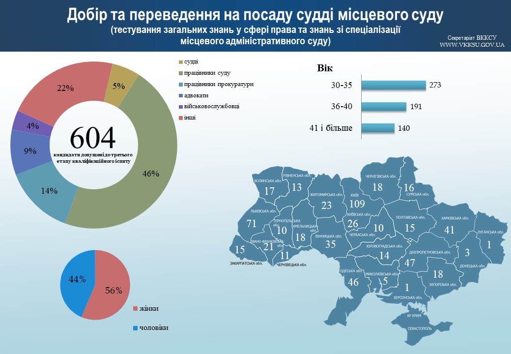 До тестування загальних знань у сфері права та знань зі спеціалізації місцевого адміністративного суду допущено 2 632 особи: